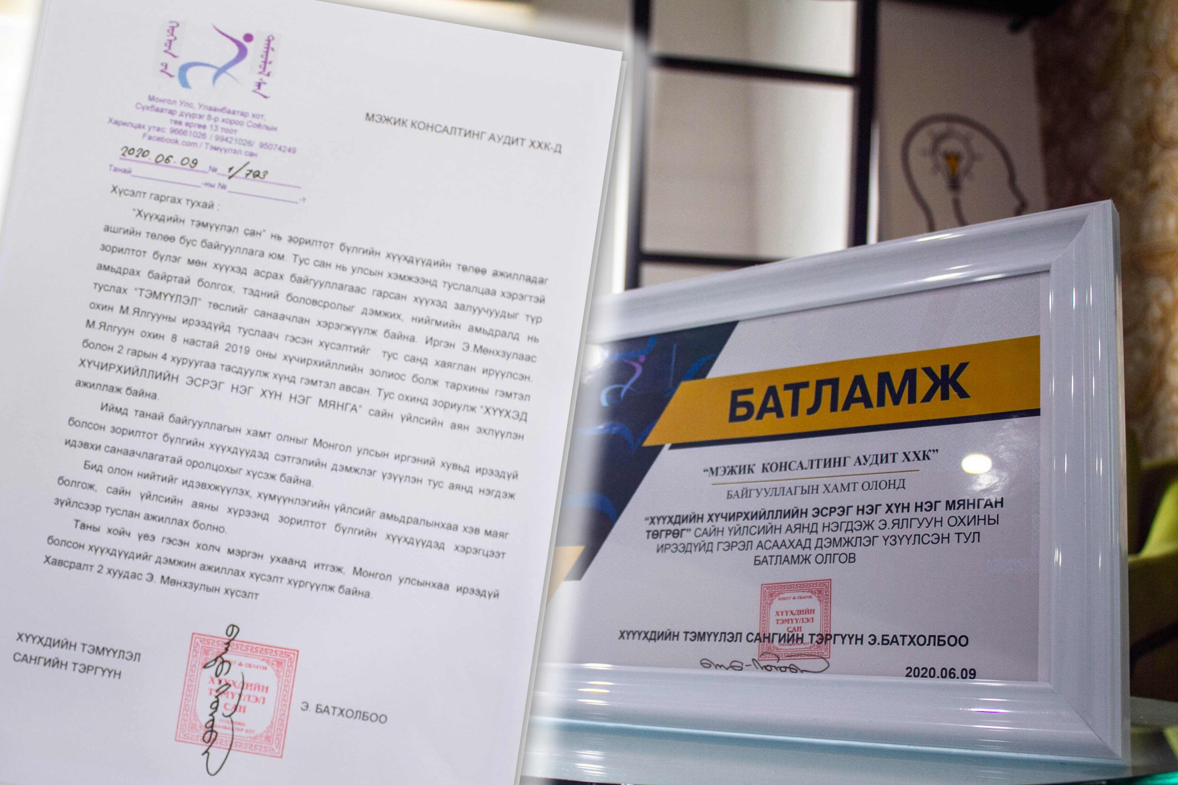 Мэжик консалтинг аудит ХХК нь зорилтот бүлгийн хүүхдүүдийн төлөө ажилладаг ашгийн төлөө бус байгууллага болох “Хүүхдийн тэмүүлэл сан”-гаас зохион байгуулж буй “Хүүхдийн хүчирхийллийн эсрэг нэг хүн нэг мянган төгрөг” сайн үйлсийн аянд нэгдэж Э.Ялгуун охинд хандив өргөлөө.