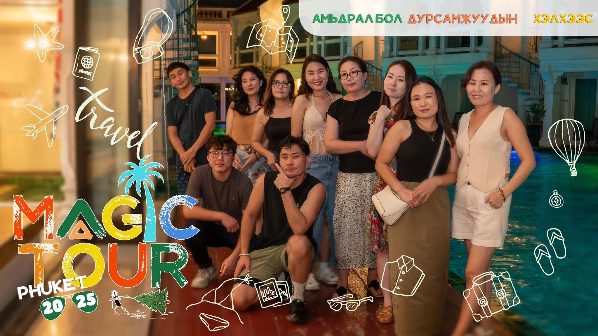 Энэ удаагийн #Magic_Tour_2025 аяллаар Тайланд Улсын наран шарлагын диваажин болсон Пукет арлын үзэсгэлэнт байгаль, өвөрмөц соёл, гайхамшигт үзүүлбэрүүдтэй танилцах 10 хоногийн дурсамжит аяллыг зохион байгуулсан юм.