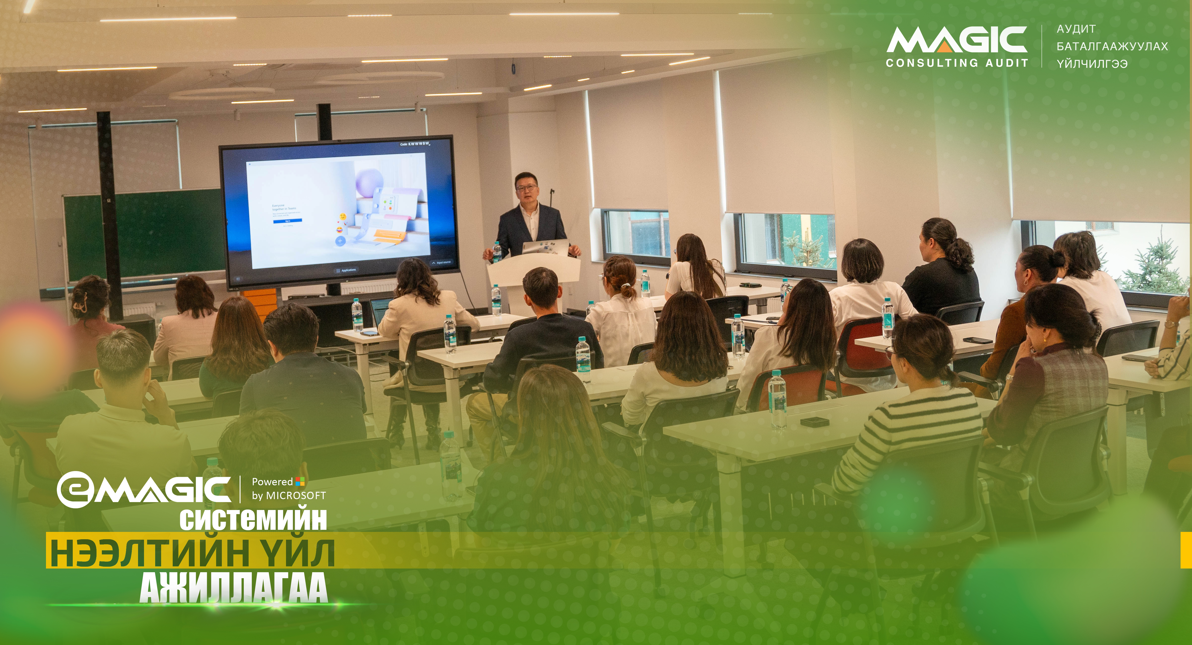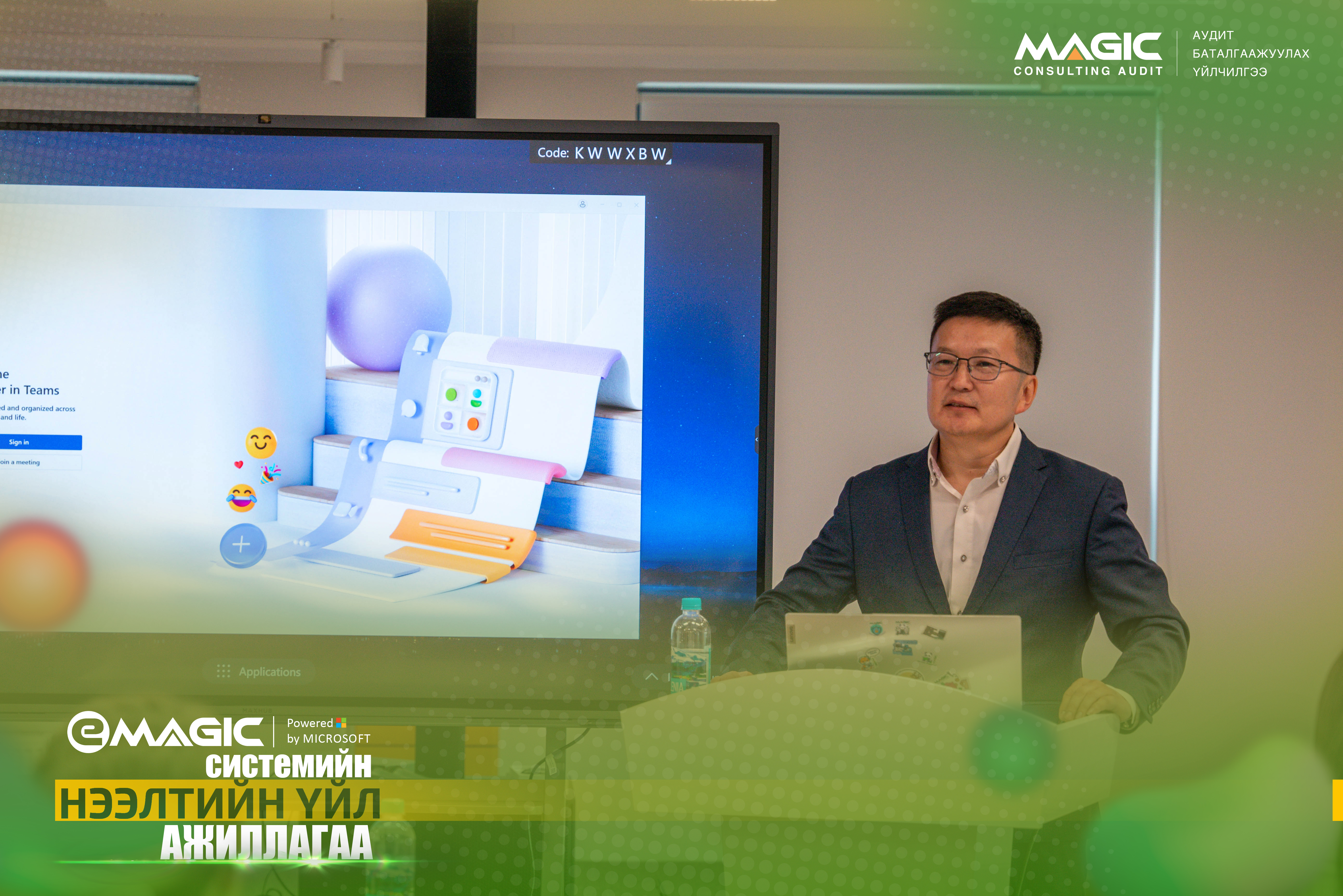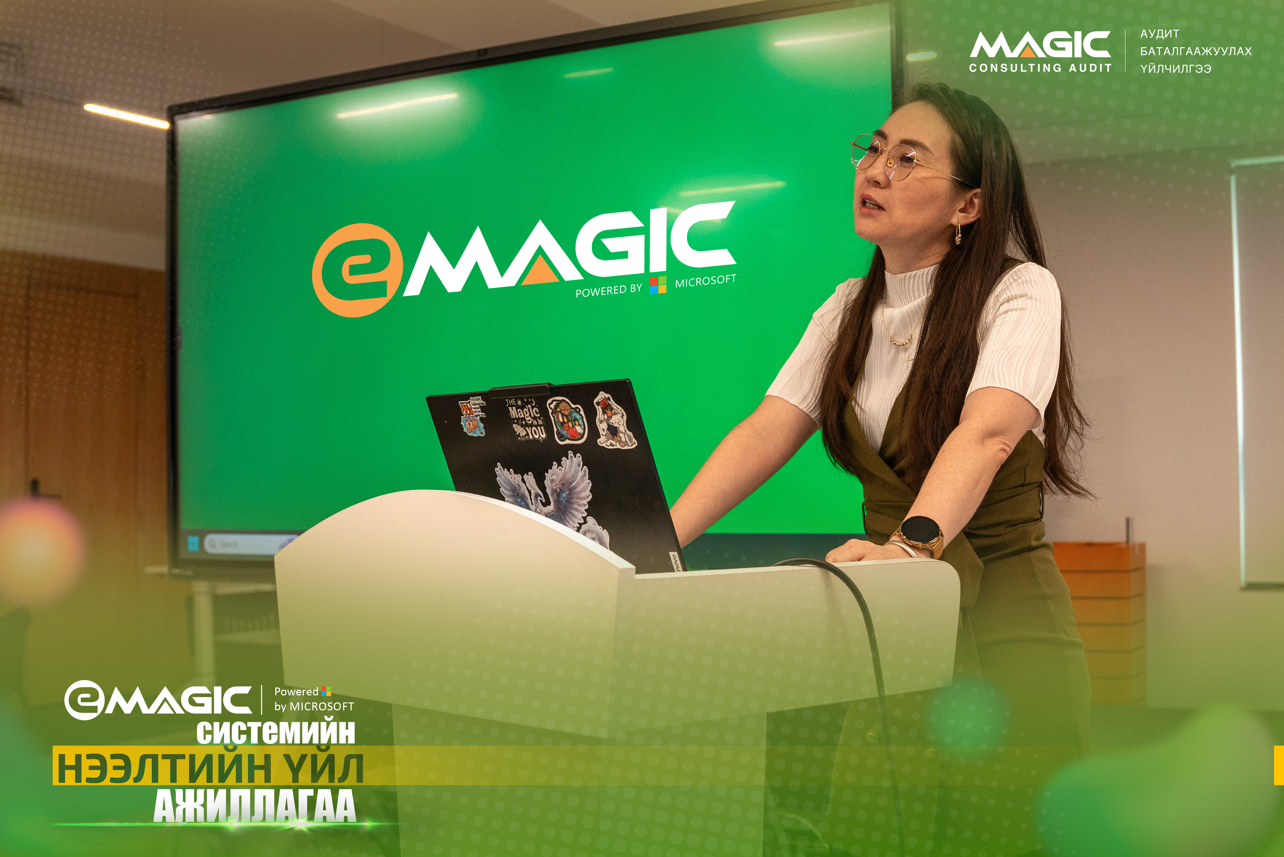 eMAGIC системийн нээлтийг Мэжик Консалтинг Аудит ХХК-н гүйцэтгэх захирал С.Мөнхбаяр нээж, аудит баталгаажуулах үйлчилгээний цаашдын чиг хандлага, зорилго зорилтоо танилцуулан үг хэллээ. Үүний дараагаар Microsoft 365-ын Монгол дах албан ёсны түнш Мэжик Клоуд ХХК-ийн системийн хөгжүүлэгч О.Гүндэгмаа системийн танилцуулгыг хийв. Арга хэмжээний төгсгөлд Мэжик Консалтинг Аудит ХХК-ийн партнер Д.Түмэнжаргал, аудитын менежер Н.Мөнхзаяа, ерөнхий менежер Ч.Алтангэрэл нар санал сэтгэгдлээ хуваалцсанаар арга хэмжээ амжилттай өндөрлөсөн юм.