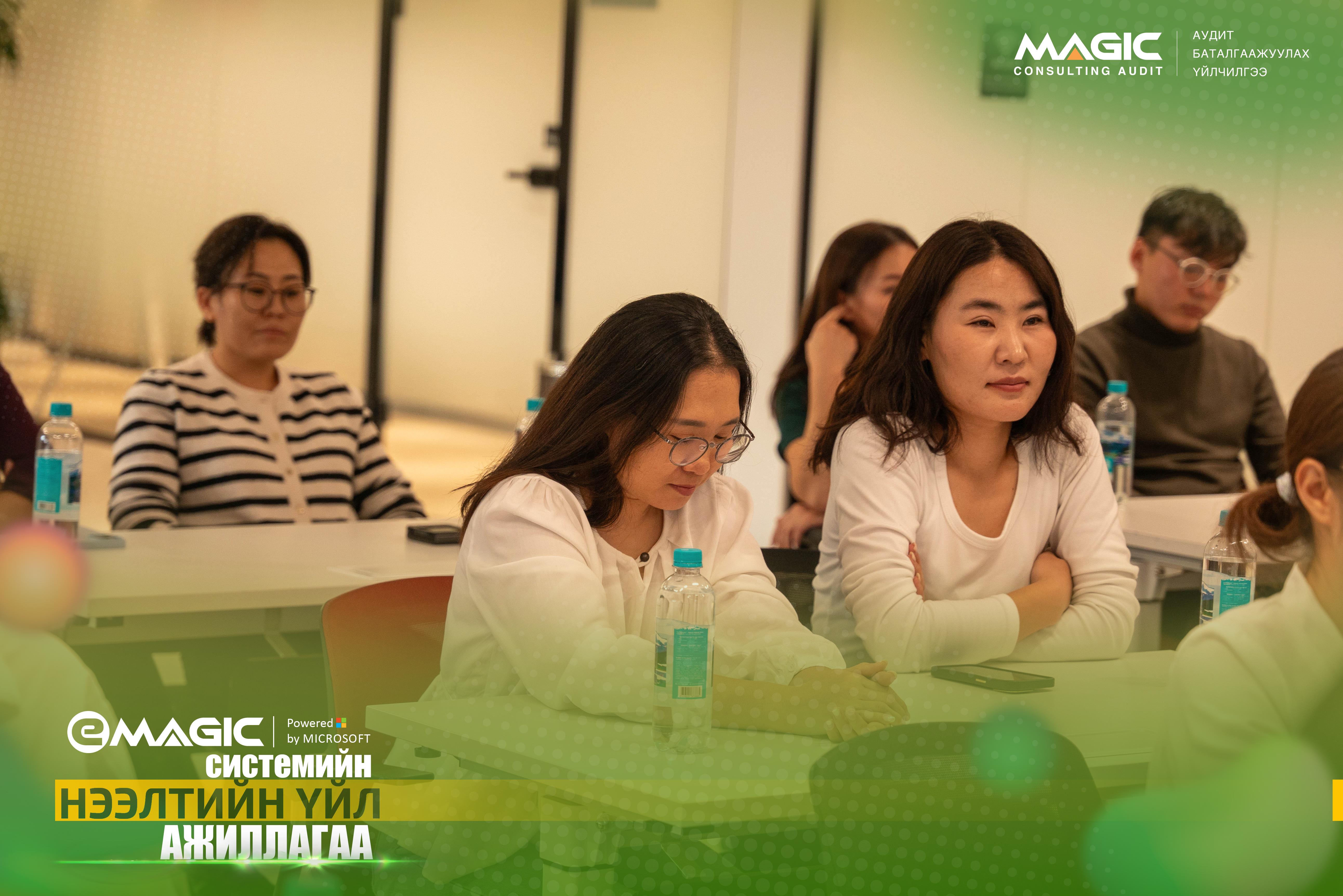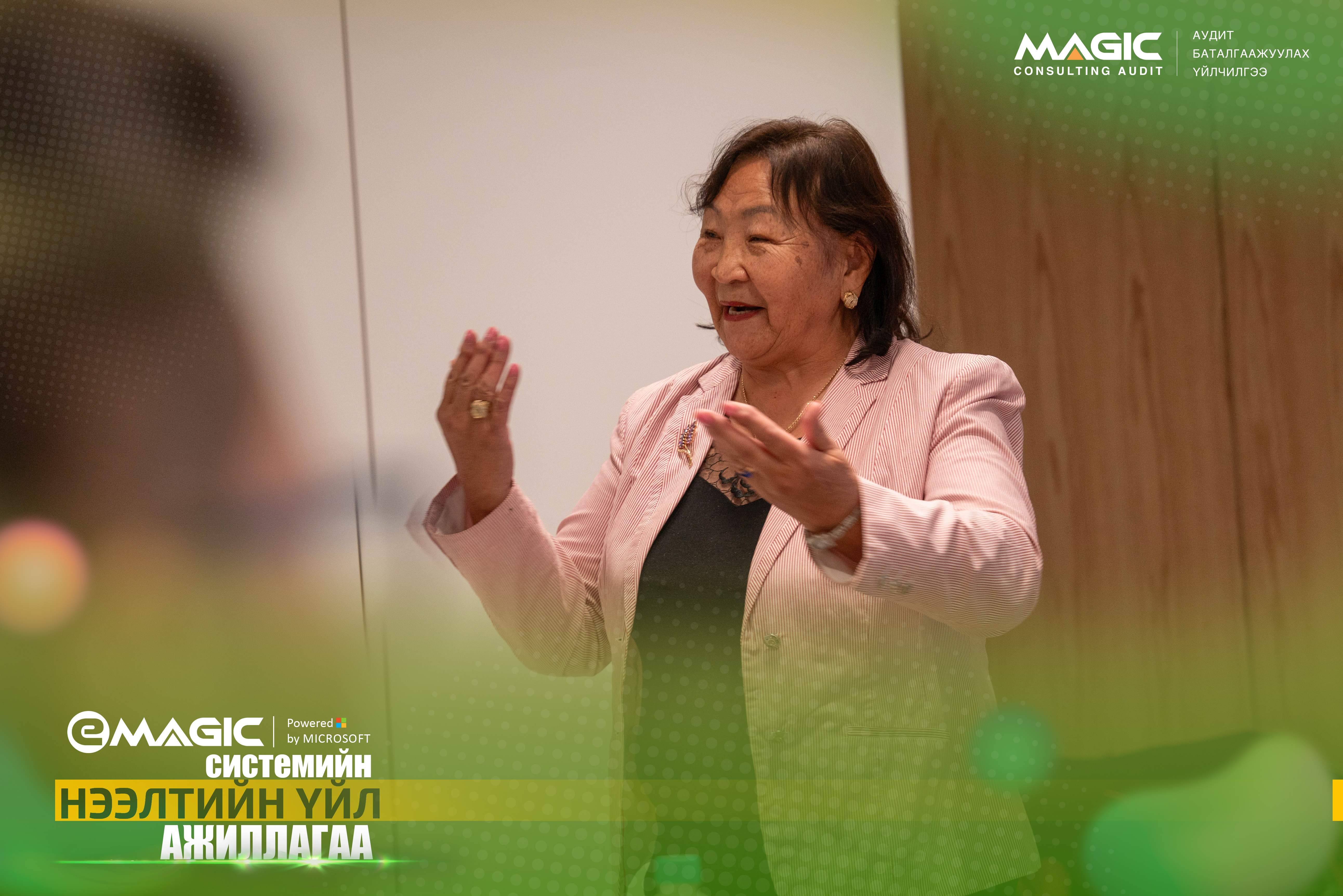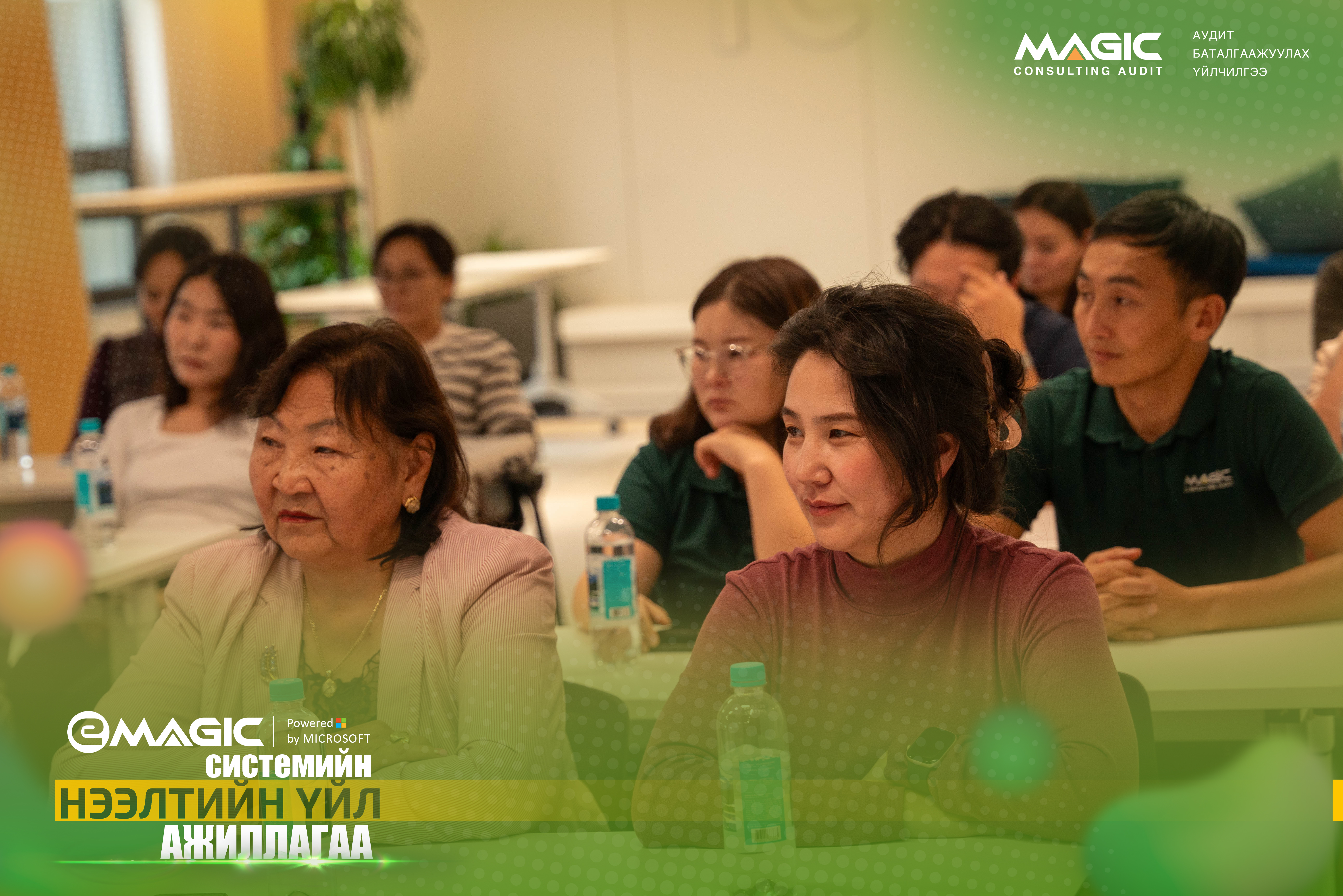 eMAGIC системийн нээлтийг Мэжик Консалтинг Аудит ХХК-н гүйцэтгэх захирал С.Мөнхбаяр нээж, аудит баталгаажуулах үйлчилгээний цаашдын чиг хандлага, зорилго зорилтоо танилцуулан үг хэллээ. Үүний дараагаар Microsoft 365-ын Монгол дах албан ёсны түнш Мэжик Клоуд ХХК-ийн системийн хөгжүүлэгч О.Гүндэгмаа системийн танилцуулгыг хийв. Арга хэмжээний төгсгөлд Мэжик Консалтинг Аудит ХХК-ийн партнер Д.Түмэнжаргал, аудитын менежер Н.Мөнхзаяа, ерөнхий менежер Ч.Алтангэрэл нар санал сэтгэгдлээ хуваалцсанаар арга хэмжээ амжилттай өндөрлөсөн юм.